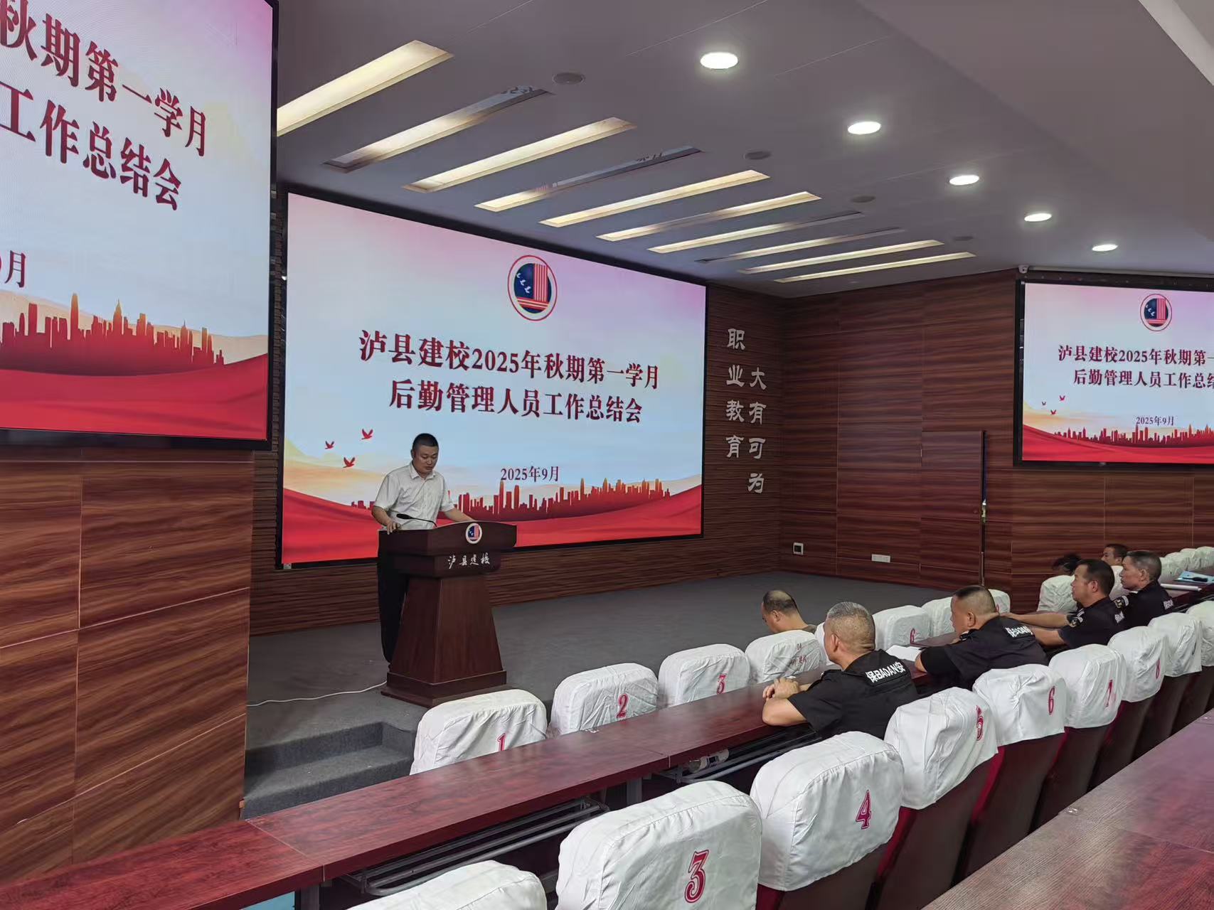 9月28日上午,瀘縣建校和保安公司組織全體后勤工作人員召開(kāi)第一學(xué)月工作總結(jié)會(huì)。會(huì)議系統(tǒng)梳理了開(kāi)學(xué)以來(lái)在校園安全、環(huán)境維護(hù)、設(shè)施保障等方面的工作成效、存在問(wèn)題及下步改進(jìn)方向,向一線員工致以節(jié)日慰問(wèn),并部署下階段重點(diǎn)任務(wù),強(qiáng)調(diào)要持續(xù)優(yōu)化服務(wù)質(zhì)量,筑牢校園安全防線。